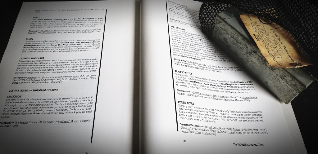 Critique, however, was also leveled at the constituency of the compendium itself. Some inclusions felt tangential, others arbitrary. Acts who (even then) were considered influential – if not imperative – were initially omitted: A Split Second, Klinik, Lassigue Bendthaus, Portion Control…all originally absent (whilst John Cale and Hawkwind amassed three full pages).